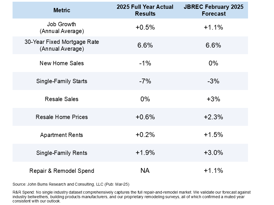 On March 27, 2026, John Burns Research & Consulting announced its 2025 forecast report card, comparing its original thesis to how the year actually played out nationally. Mortgage rates were exactly 6.6%, as predicted, and the expected slowdown of new construction proved accurate.