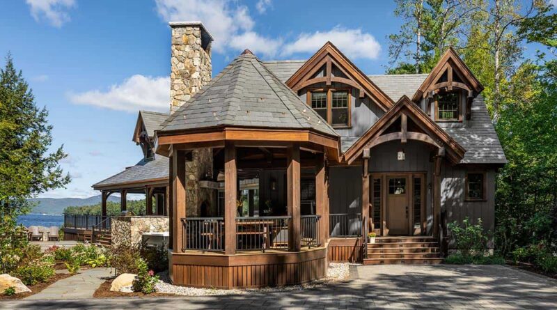 Timber Point, designed by TMS Architects & Interiors, is a 7,800-square-foot timber frame home set on a scenic peninsula in New Hampshire’s Lakes Region. Built as a year-round retreat overlooking Newfound Lake, the residence blends rustic craftsmanship with refined, modern comfort. The home features four bedrooms, four bathrooms, a screened porch and a dramatic turret with an outdoor fireplace, creating inviting spaces for family gatherings and lakeside living. Every detail, from the handcrafted timber structure to the serene placement of windows framing the water, reflects a deep connection to its natural surroundings.