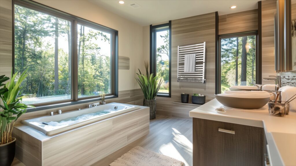 - Wellness-centric spaces: Bathrooms are evolving into wellness suites with features like heated towel racks, steam showers, and deep soaking tubs, while kitchens are designed for comfort and functionality.