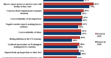 Homebuilders in San Antonio, Texas pulled nearly 3,885 residential permits in 2025. Production builder Lennar pulled of those 1,246 permits, almost exactly one third of the citywide total. Overall, the city reported a drop in permit activity compared to the post pandemic boom. Reported from the San Antonio Business Journal, permits are is down 38% from the 6,271 filed in 2021. This is not a city-wide trend, but echoes of the affordability constraints facing many would-be buyers. Lennar attributes to their success to continued incentives, including mortgage rate buydowns to sustain sales momentum.