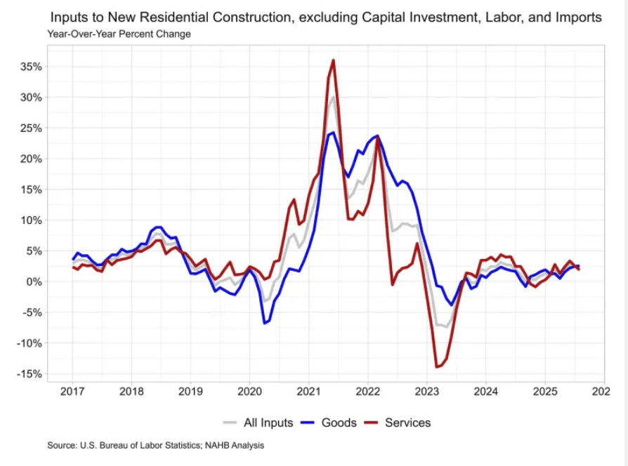 “On a year-over-year basis, the index for domestic goods increased 2.3%, while prices for imported goods fell 1.1% over the same period. Comparatively, service prices have risen more than good prices over the past year, rising 3.0% year-over-year. The combined index for inputs to new construction is up 2.1% on a yearly basis.” said Jesse Wade economist and director of tax and trade policy analysis for NAHB.
